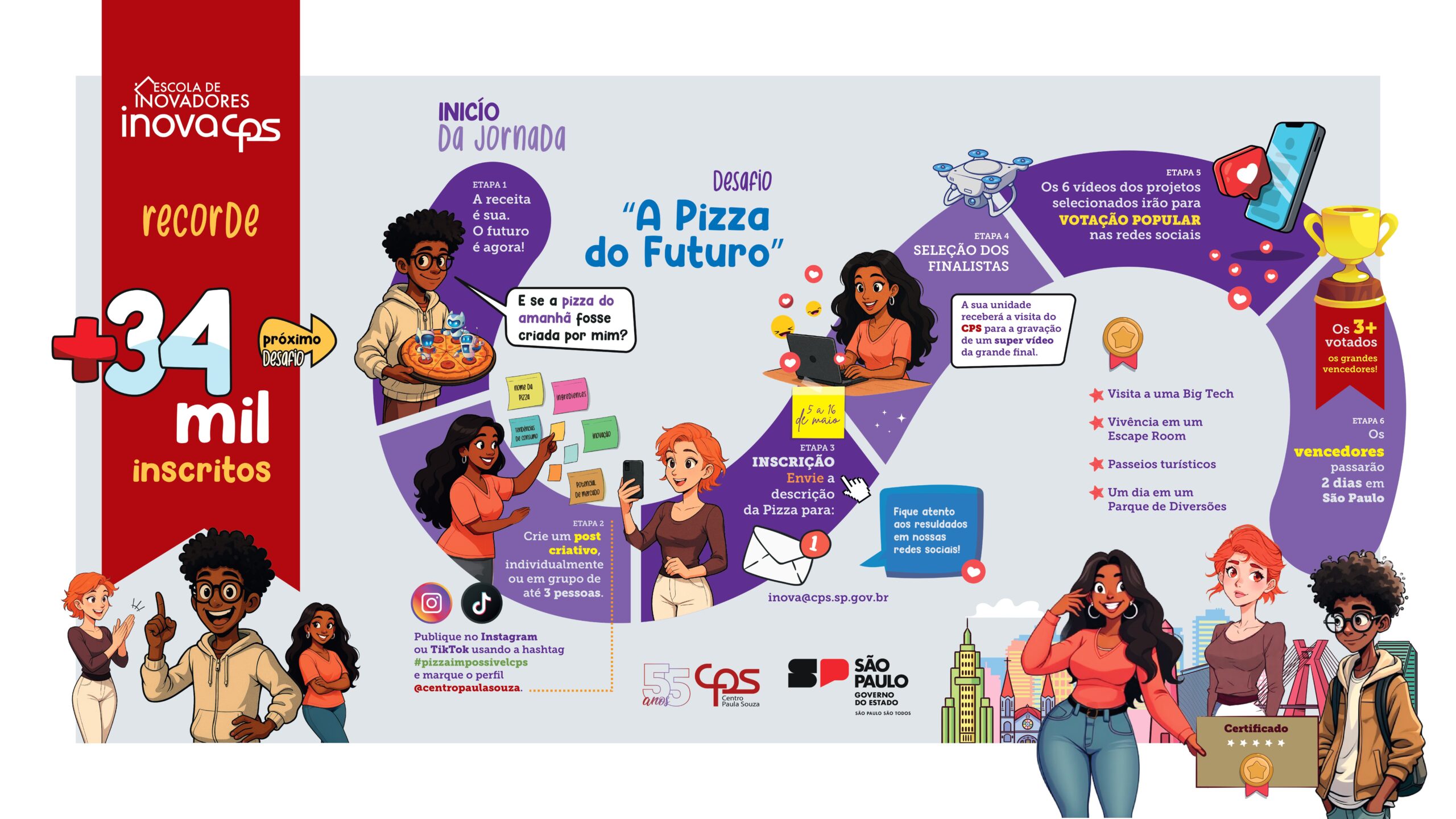 Seleção das Melhores Ideias: o As 6 propostas mais criativas serão selecionadas para a fase final. As equipes selecionadas terão suas criações filmadas em suas escolas, destacando o processo criativo. A INOVA CPS e CPS Carreiras estará em contato com as equipes escolhidas.